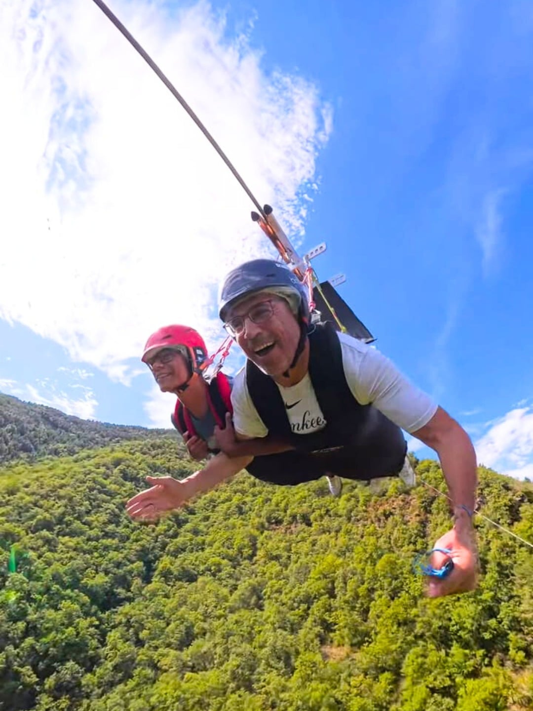 En la Tirolina Ordesa Pirineo se puede volar en modalidad tándem, dos personas al mismo tiempo, compartiendo: